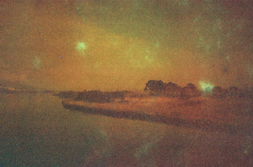 Pas loin, presque, pas tout à fait : une somme d’imperfections, de fragilités et d’heureux accidents qui donnent à voir un ailleurs, vaste et légèrement dystopique. S’en remettre au hasard de la matière argentique usée, c’est une manière de s’arranger avec l’incertitude, de laisser la place au doute et à l’indécision. Que sommes-nous en train de regarder ? Écrire “pas loin” c’est déjà écrire “loin” : c’est appeler l’espace, la distance, le territoire, les paysages. C’est confondre proche et lointain dans une exploration continuelle.