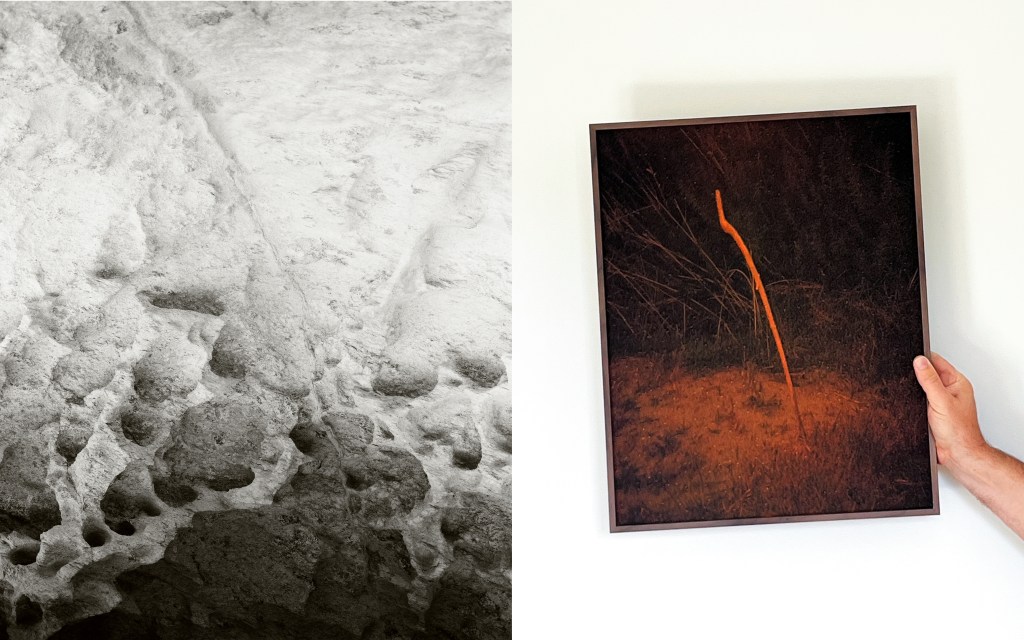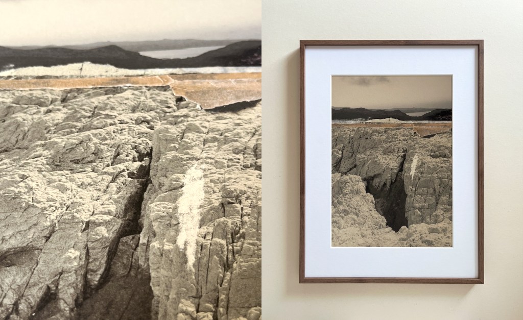 Collages à quatre mains conçus à partir de photographies prises par le duo lors d’une exploration sur l’érosion du littoral.