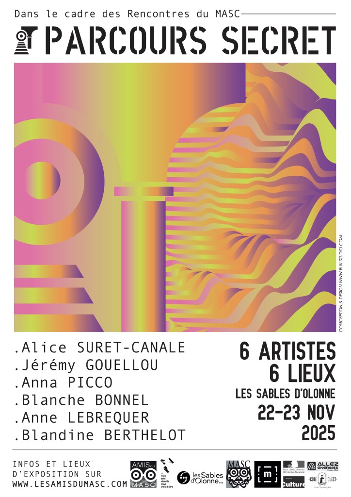 « Les Amis du MASC vous proposent une exposition « hors les murs », traversant d’espaces en espaces les Sables-d’Olonne. Pendant tout ce week-end, vous êtes invités à des rencontres singulières, puisqu’elles auront lieu dans des lieux privés, transformés en galeries d’art éphémères ! D’adresse en adresse, vous ferez la rencontre d’un lieu, d’un artiste et d’une démarche artistique pour flâner, se promener, voyager au plus près des habitants et des artistes qui habiteront l’intime, le temps d’un week-end. 6 jeunes artistes, lauréats du parcours « Matière vive », proposé par le Pôle arts visuels des Pays de la Loire, sont là pour vous présenter leurs œuvres. Des maisons de particuliers, des ateliers d’artistes, des appartements, etc. »